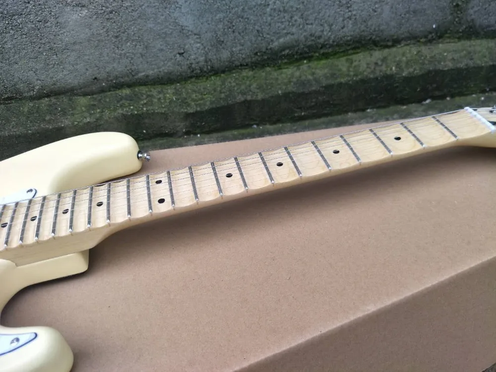 Factory Custom Milk White Retro Body Electric Guitar with Retro Yellow Neck,SSS Pickups,Scalloped Neck,,Offer Customized : Click Here